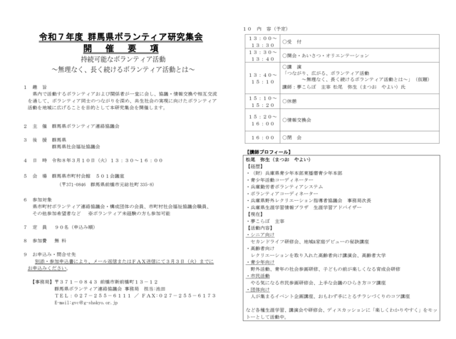 今回の研究集会では、「持続可能なボランティア活動 〜無理なく、長く続けるボランティア活動とは〜」をテーマに開催いたします 。県内で活動するボランティアの皆様や関係者が集まり、協議や情報交換を通して、共生社会の実現に向けた活動の輪を広げることを目的としています 。