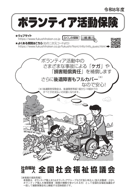 川場村社会福祉協議会では、安心してボランティア活動に取り組んでいただくため、令和8年度のボランティア活動保険の加入申し込みを3月1日より開始いたします。