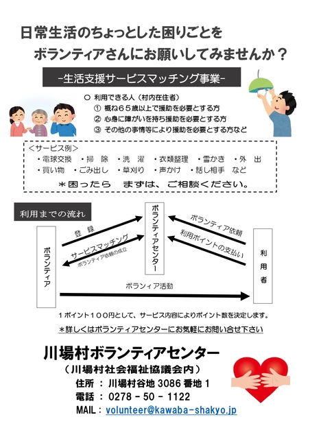 川場村ボランティアセンター(川場村社会福祉協議会内)