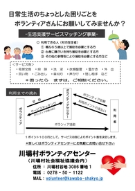 川場村ボランティアセンターでは、村民の皆様が住み慣れた地域で安心して暮らし続けられるよう、ボランティアさんによる「生活支援サービスマッチング事業」を行っています。