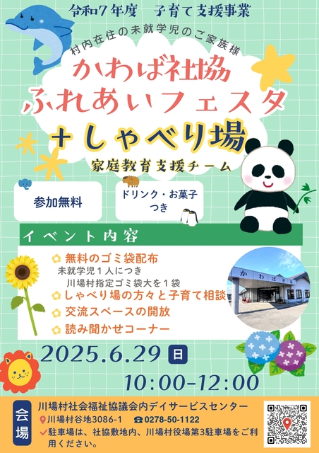 川場村社会福祉協議会では、地域の子育て世帯を応援するためのイベント「かわば社協ふれあいフェスタ+しゃべり場」を開催いたします!