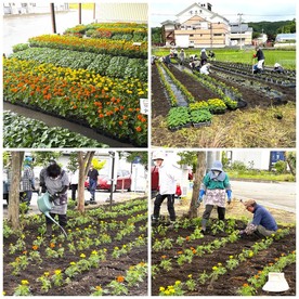 6月14日(土)から6月15日(日)に川場村老人クラブ連合会で、村内の各地区で『花いっぱい運動』(植花活動)を行いました。川場村内の道路にマリーゴールドとサルビアが彩りを添えています。