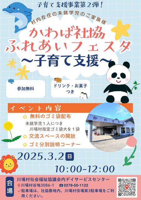 川場村社会福祉協議会では、地域の子育て世帯を応援するためのイベント「かわば社協ふれあいフェスタ~子育て支援~」を開催いたします!